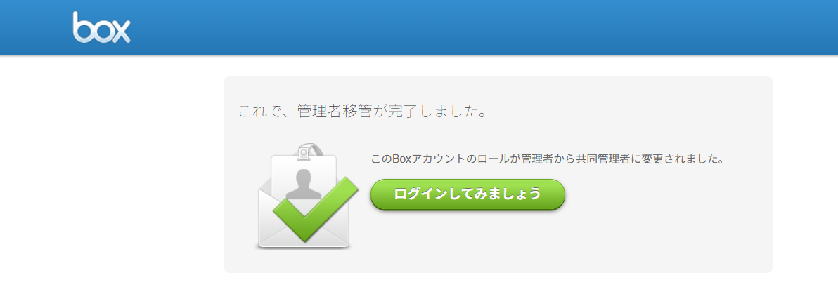 弊社より、Box社へ管理者変更を依頼いたします。