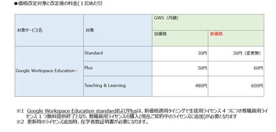 ※Google Workspace Education standardおよびPlusは、新価格適用タイミングで